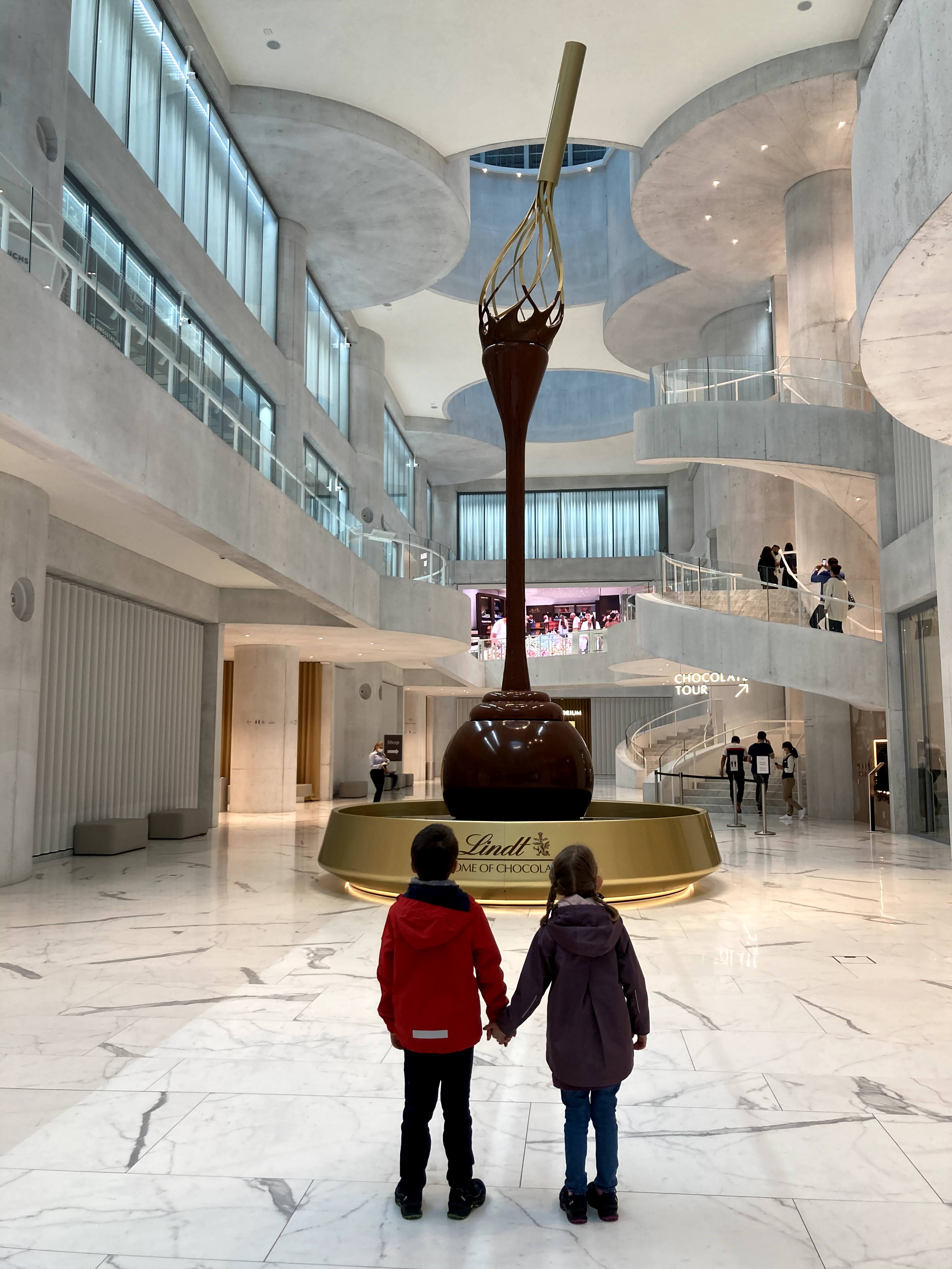 Due semplici note tecniche: 1 attenzione –> il Museo è situato nella zona 150 quindi dovrete aggiungere questa zona al biglietto dei mezzi di Zurigo; 2 noi siamo stati fortunati e non avevamo prenotato i biglietti ma vi conviene prenotarli online prima di arrivare con orario d’entrata per evitare di fare code; 3 nel sito web del museo, nella pagina in cui trovate come arrivare al museo c’è il link al sito delle ferrovie svizzere in cui potete direttamente prenotare i biglietti del treno e del museo con uno sconto del 20% sui mezzi pubblici. Non appena arrivate all’ingresso del museo trovate ad attendervi un’enorme fontana di cioccolato… e comincia la magia.