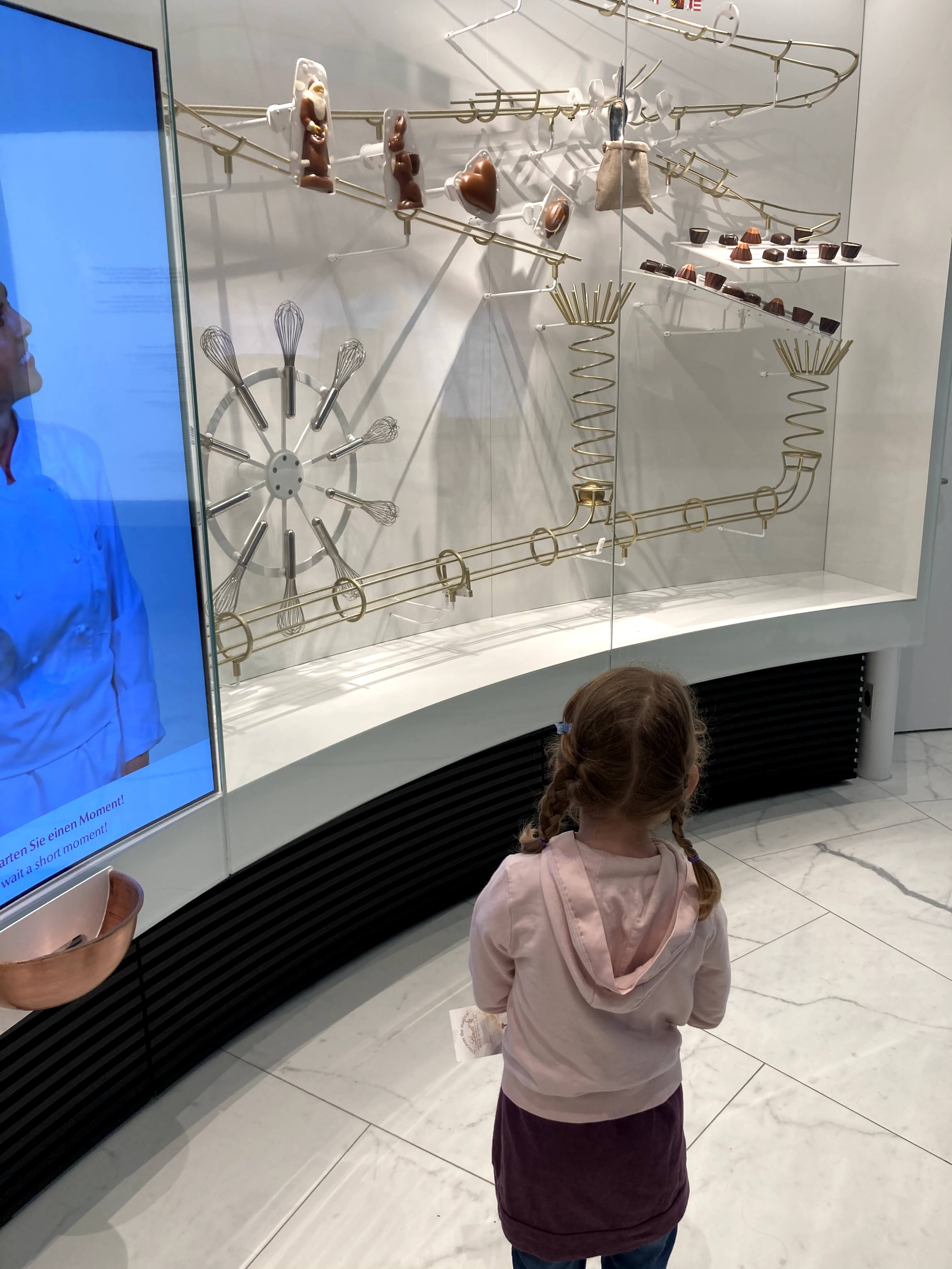 Ci sono le audio guide multilingua per gli adulti e in tedesco per i bambini, il percorso è molto interessante e interattivo, grandi e piccini non si annoieranno. Si parte dal racconto della nascita della pianta di cioccolato con video e attrezzi del mestiere per poi arrivare alla storia del cioccolato nelle varie civiltà, passando dalla nascita delle prime fabbriche di cioccolato in Svizzera fino ad arrivare alla tecnologia dei giorni nostri. In un’altra sezione del museo potrete degustare cioccolato fuso bianco, al latte e fondente direttamente sul cucchiaino, davvero una goduria. Inoltre i mastri cioccolatai vi prepareranno davvero un dono speciale, una pallina d’oro con un tesoro in ricordo della vostra visita. Alla fine del giro troverete lo shop e un caffè dove potete mangiare toast o panini e prendere un buon caffè.