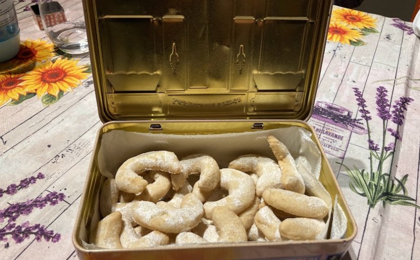 Per me ogni ricetta ha la sua storia, soprattutto le ricette dei dolci sono ricordi che conservo gelosamente e che mi piace sempre raccontare. Questi biscottini mi sono stati regalati per la prima volta dalla mia amica Laura super lettrice di questo Blog, mi ricordo ancora erano in una scatola cilindrica bianca e azzurra dove all’interno del coperchio aveva attaccato una pallina azzurra in lana cotta e poi c’era il sacchettino di questi fantastici biscottini. Sono tipici della Germania e infatti Laura li ha conosciuti in uno dei suoi viaggi in Germania prima di studio e poi di lavoro. Si fanno di solito per Natale da regalare o da offrire a chi ci viene a trovare e sono davvero facili da fare anche con i vostri bambini e hanno un gusto delicato alla vaniglia che è davvero buonissimo, per non parlare del profumo che c’è in casa quando li abbiamo infornati. Correte anche a vedere sui miei social, troverete il video di come ottenere questa particolare forma. A presto e buona scorpacciata di biscotti.