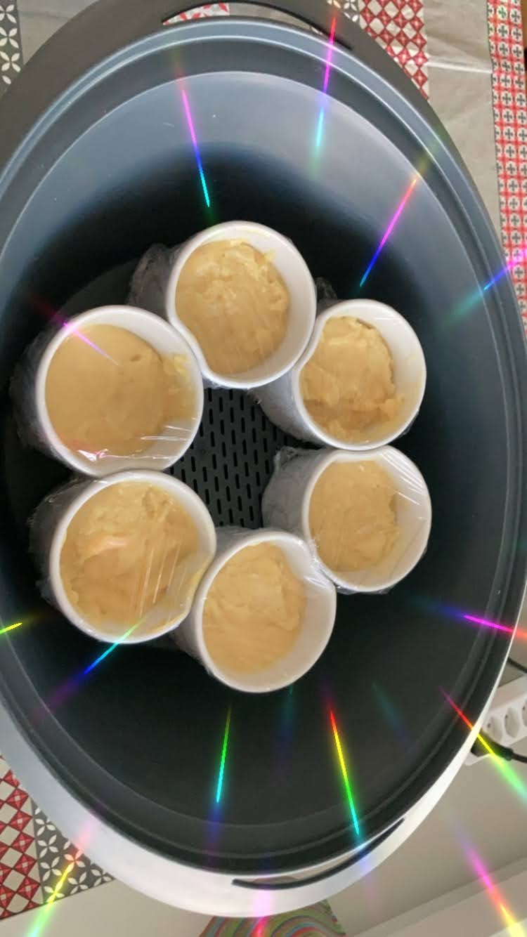 Come sapete mi piace molto sperimentare nuove ricette e soprattutto nuovi mix di ingredienti. Thermomix® e Cookidoo® insieme ci offrono sempre degli spunti perfetti e stimolano al massimo la nostra creatività, dandoci suggerimenti preziosi che mantengono la semplicità nella preparazione, ma aggiungono un pizzico di novità alle nostre ricette. Questa ricetta l’ho scovata per voi nella Collection “Cotto al Varoma: menù in cocotte”, vi chiederete come faccio a scovare sempre la ricetta perfetta? Beh su Cookidoo® posso cercare una ricetta inserendo gli ingredienti che voglio utilizzare e posso indicare anche che tipo di portata voglio realizzare. La cottura dei tortini viene appunto effettuata nelle cocottine di ceramica (ma vanno bene anche dei vasetti di vetro) nel Varoma per circa 30 minuti. Come vedete nella prima foto per prima cosa bisogna tagliare una fetta di mandarino e posizionarla sul fondo dei vostri mini contenitori e per ottenere il mandarino caramellato dovete solo aggiungere un cucchiaino di miele e poi versate il composto del tortino e procedete con la cottura.