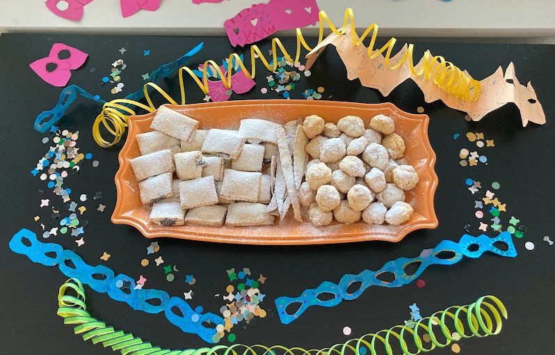 Ho sempre adorato il carnevale, mi è sempre piaciuto travestirmi (la foto che vedete è di qualche annetto fa) e soprattutto amo i dolci di questo periodo dell’anno. Ogni regione italiana ha i suoi tradizionali e anche qui in Svizzera ci sono delle specie di chiacchere (lattughe) a forma circolare. La mia nonna Maria nel suo negozio aveva montagne di dolci di carnevale ed era sempre una festa. Oggi che è giovedì grasso ho voluto provare a fare dei tortelli con la marmellata di prugne e le castagnole, tutto rigorosamente al forno. Buon Carnevale a tutti e buona scorpacciata di dolci.