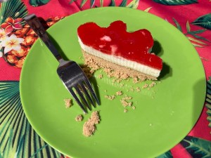Lasciare raffreddare il composto per 10 minuti e poi versarlo sulla cheesecake montata. Raffreddare nuovamente la cheesecake in frigorifero per almeno un’ora. Sformare dallo stampo con attenzione, decorare con zuccherini o qualche lampone e servire fredda.