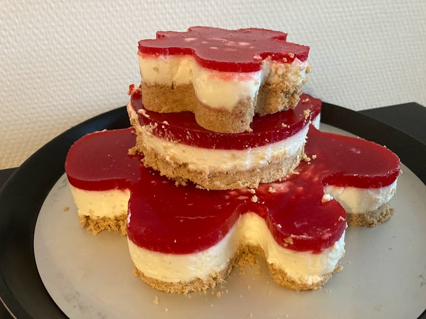 Ho pensato di festeggiare oggi tutte le mamme con questa cheesecake ai lamponi, è una ricetta che faccio sempre per le ricorrenze speciali ed è perfetta anche d’estate, perché è senza cottura, ma anche in questa stagione si lascia mangiare tranquillamente perché è molto fresca. E’ una ricetta molto versatile, perché è fatta in tre strati e a seconda degli ingredienti che scegliete potete ottenere sfumature di colore diverse. Quindi lasciatevi ispirare dai colori della frutta e decidete la combinazione perfetta per voi. Potete anche sbizzarrirvi con varie forme e poi comporle insieme come ho fatto io, purtroppo non essendo stampo a cerniera ma formine, si fa un po’ fatica a sformarle, ma il risultato wow è assicurato. Ecco a voi la ricetta e tanti auguri a tutte le mamme.