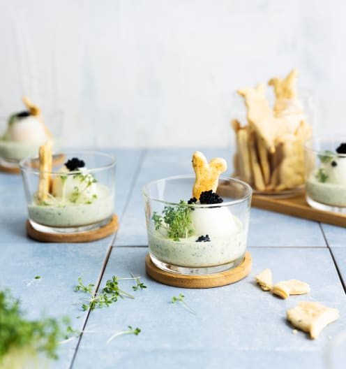 - Uova in salsa alle erbe e crackers